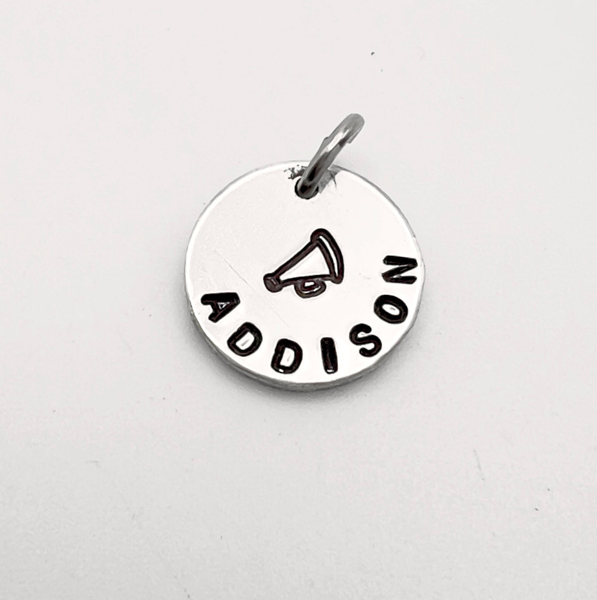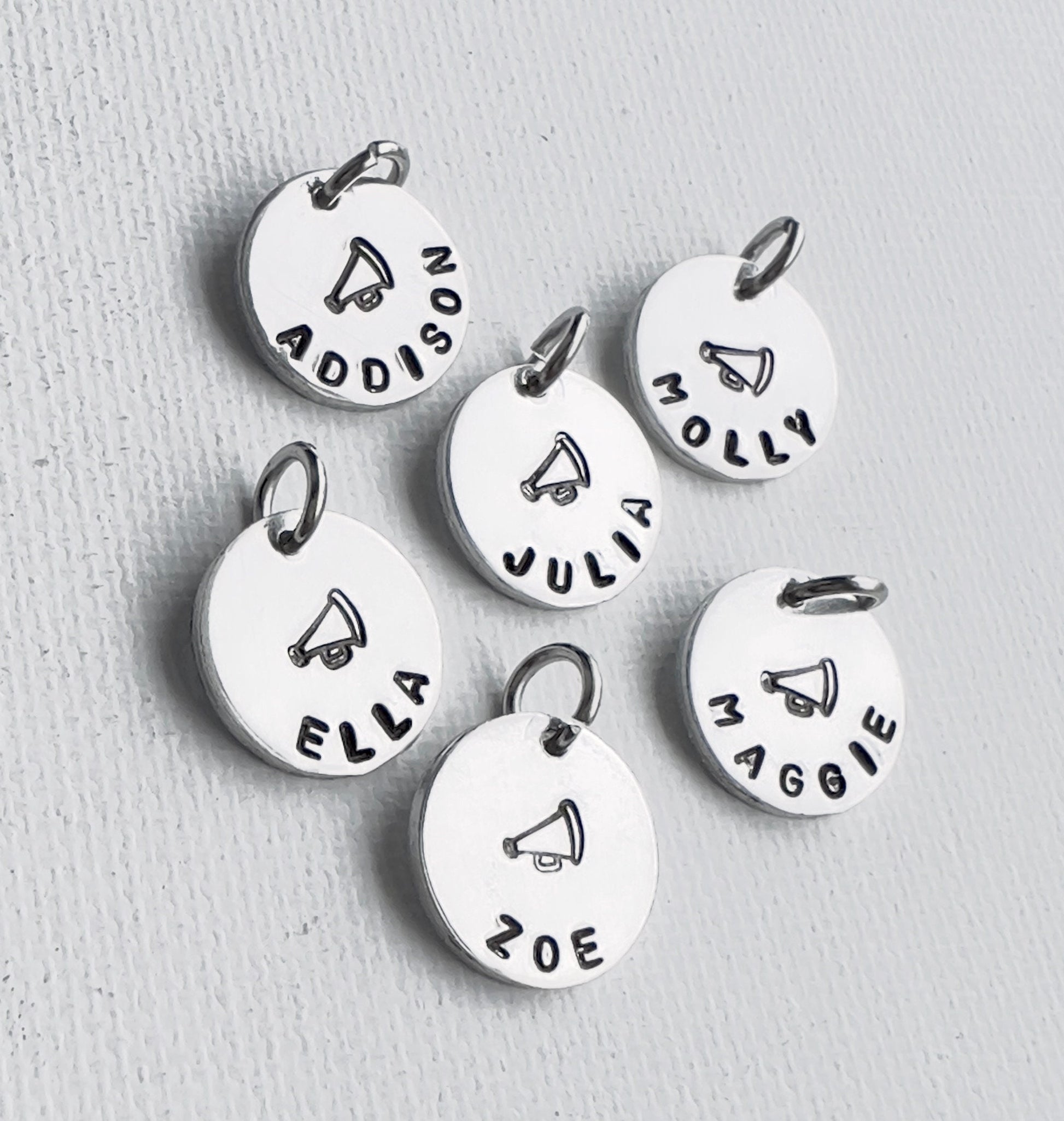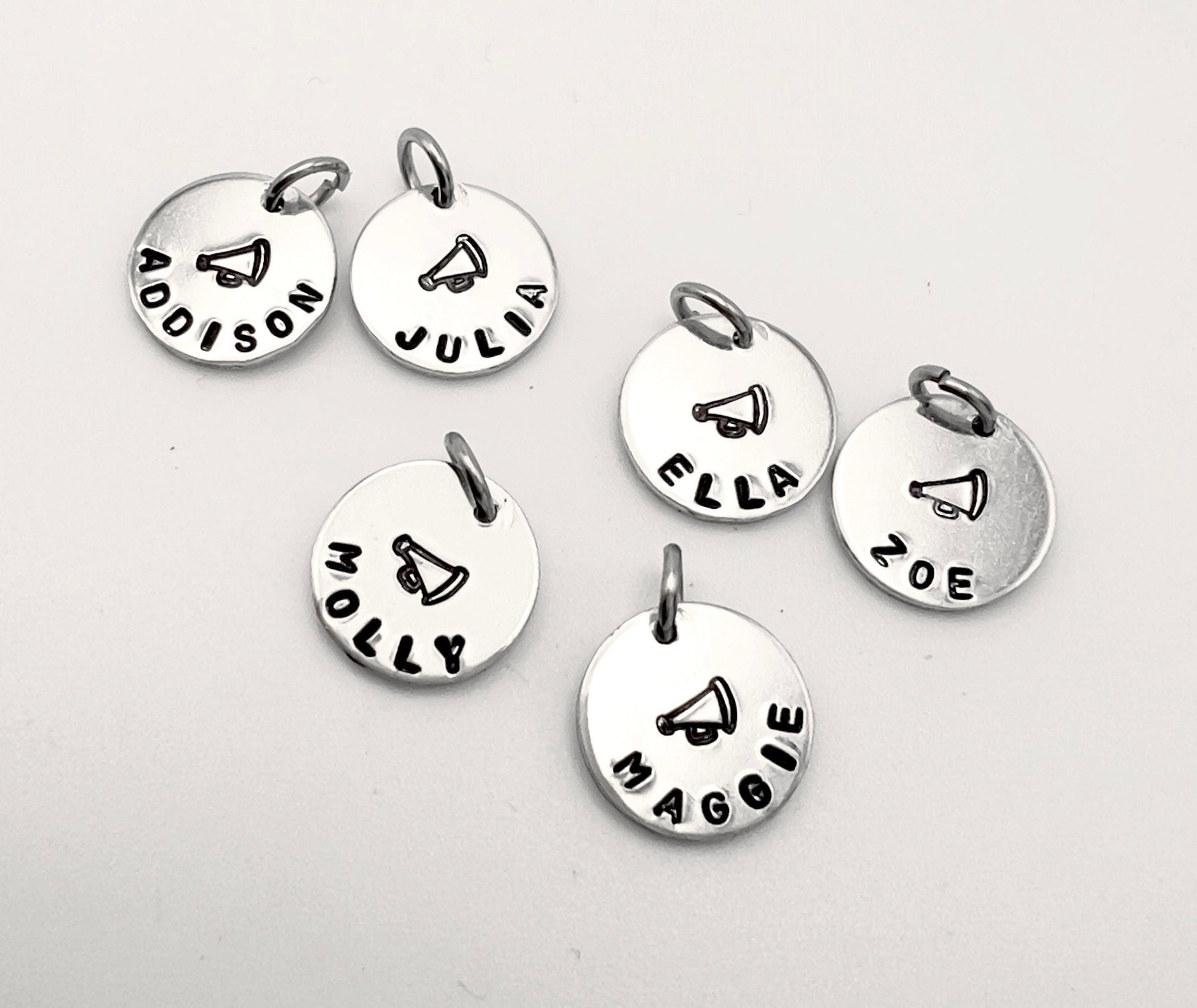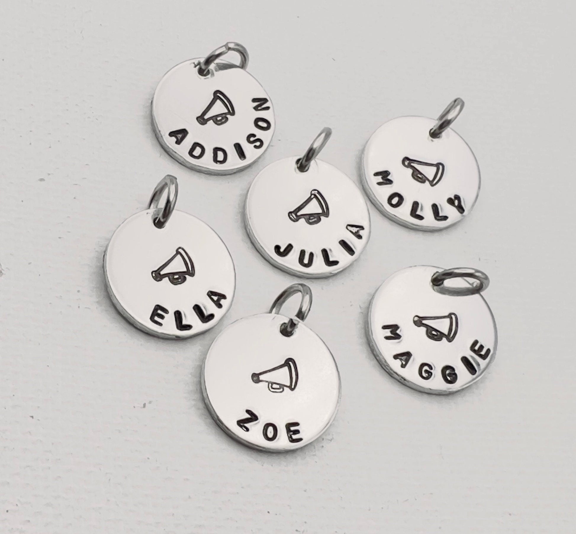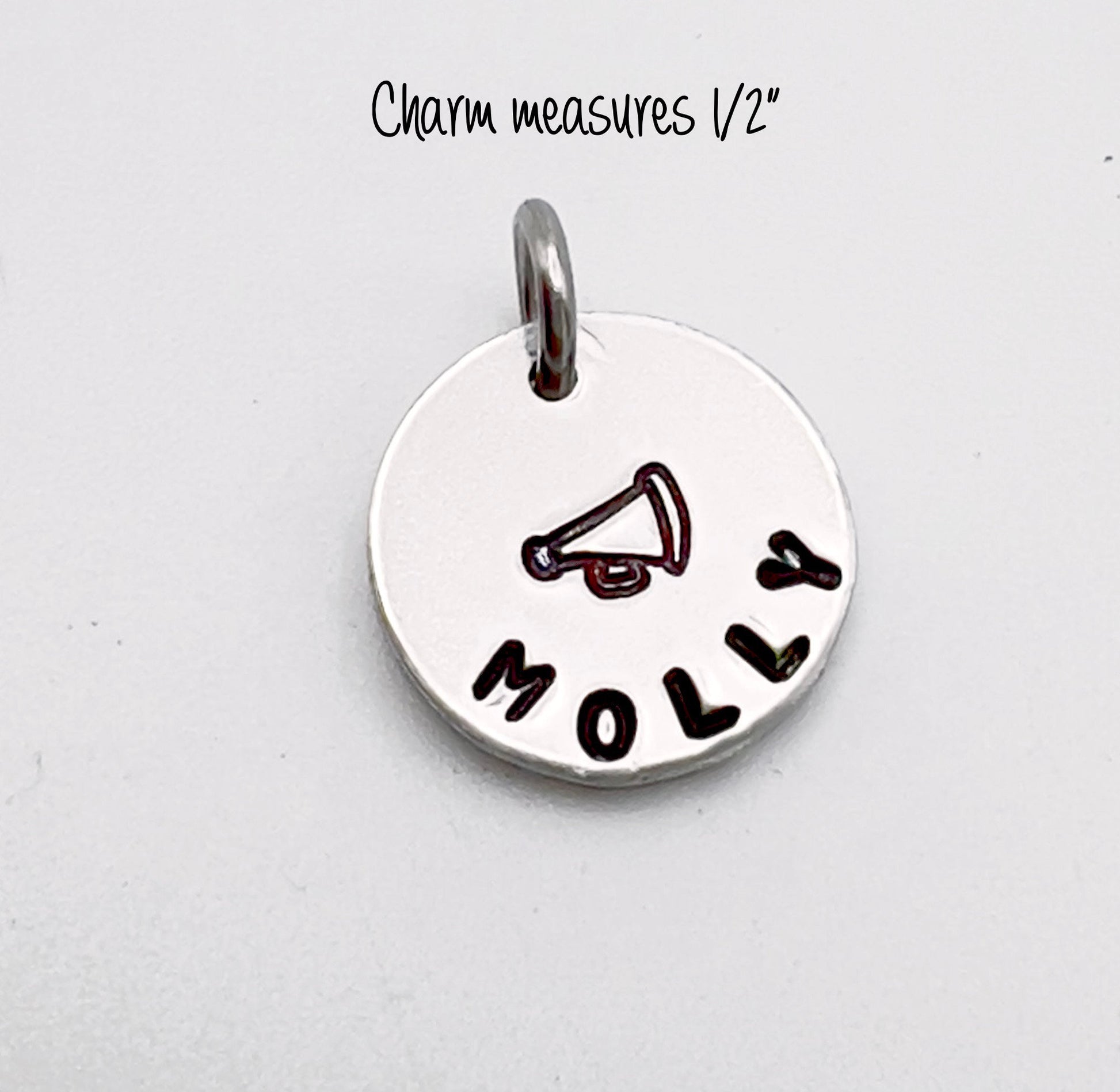 Cheerleader Charms | Cheer Team Gift |Personalized Gift | Hand Stamped Jewelry |Custom Name Charm | Cheer Team Gifts | Megaphone Charm
