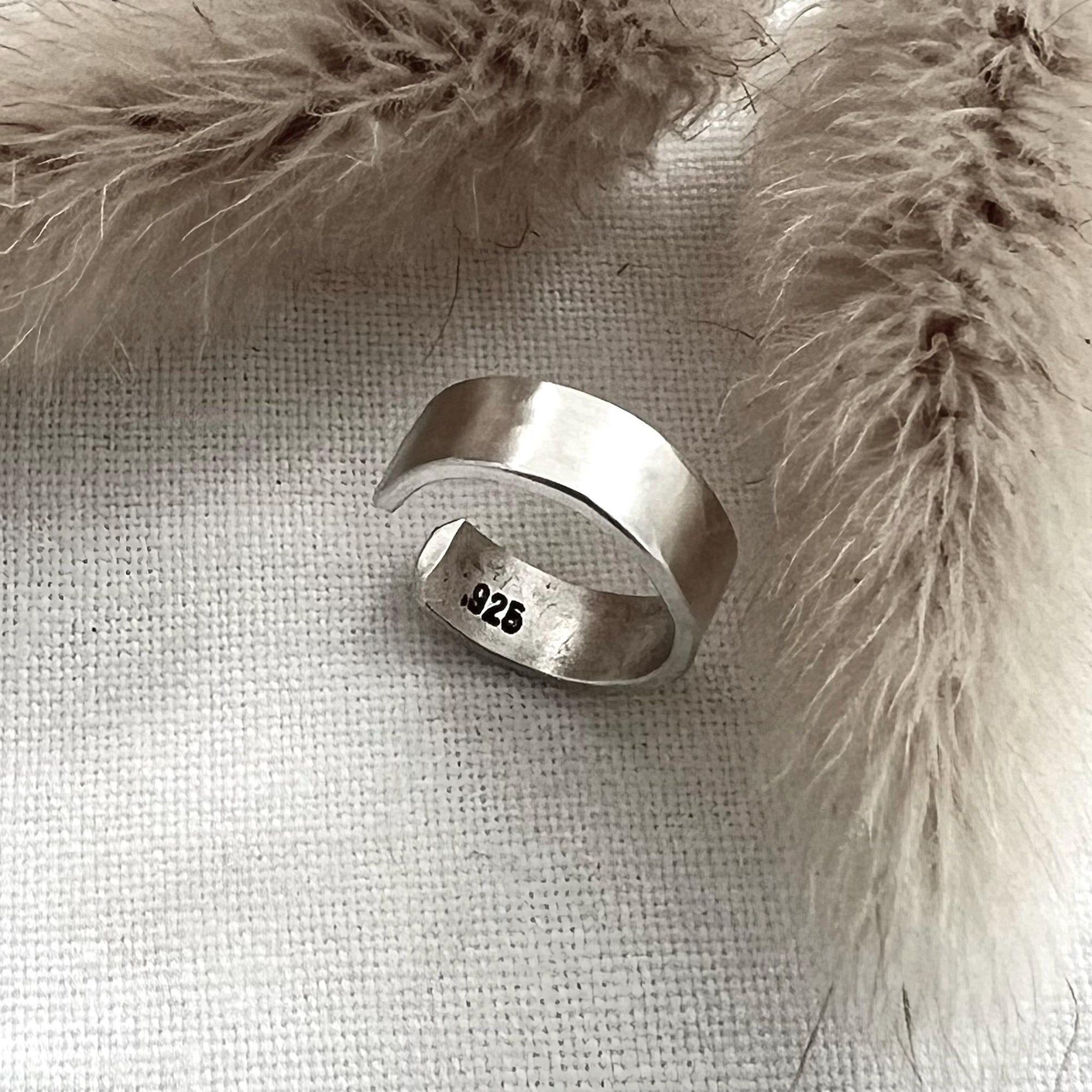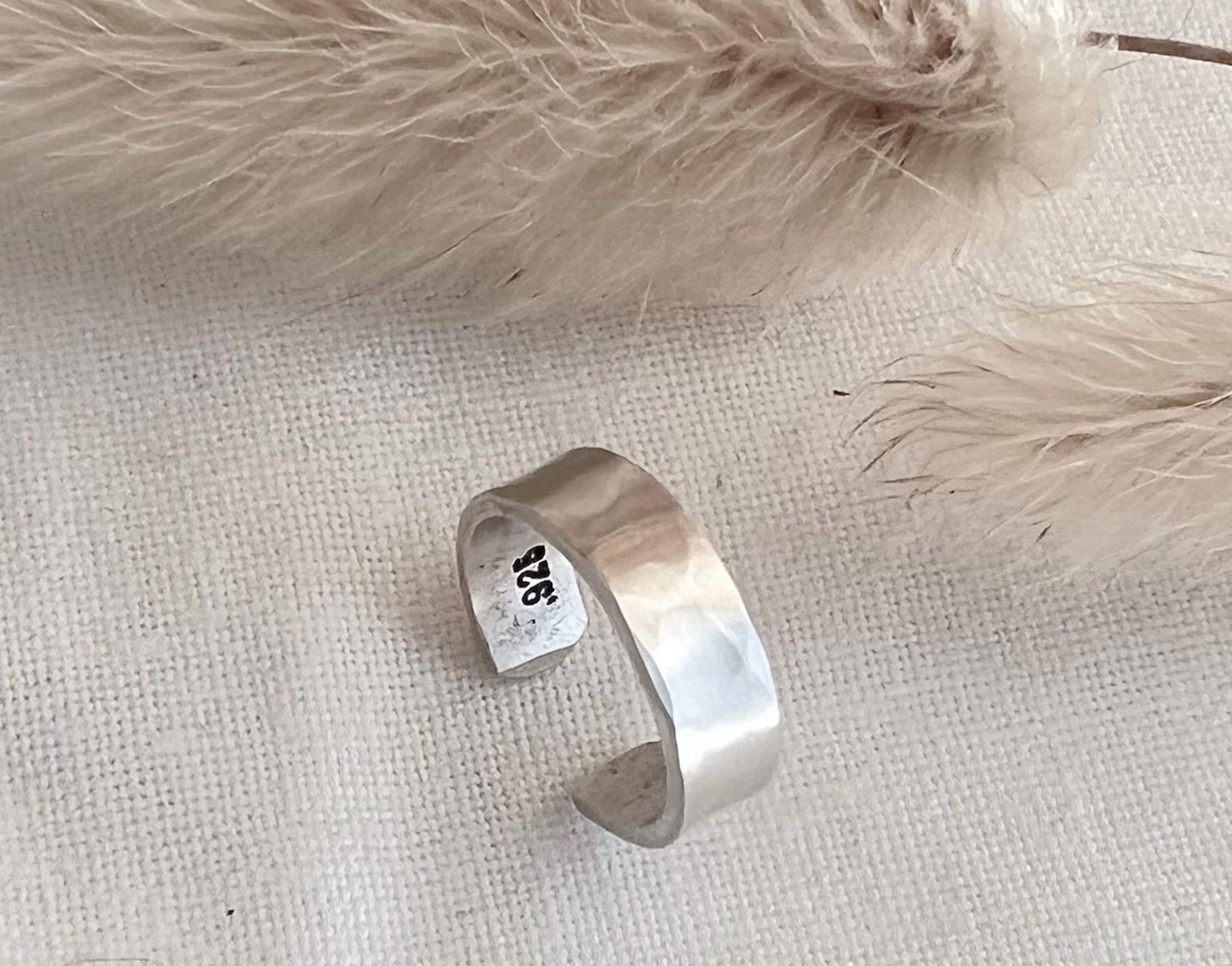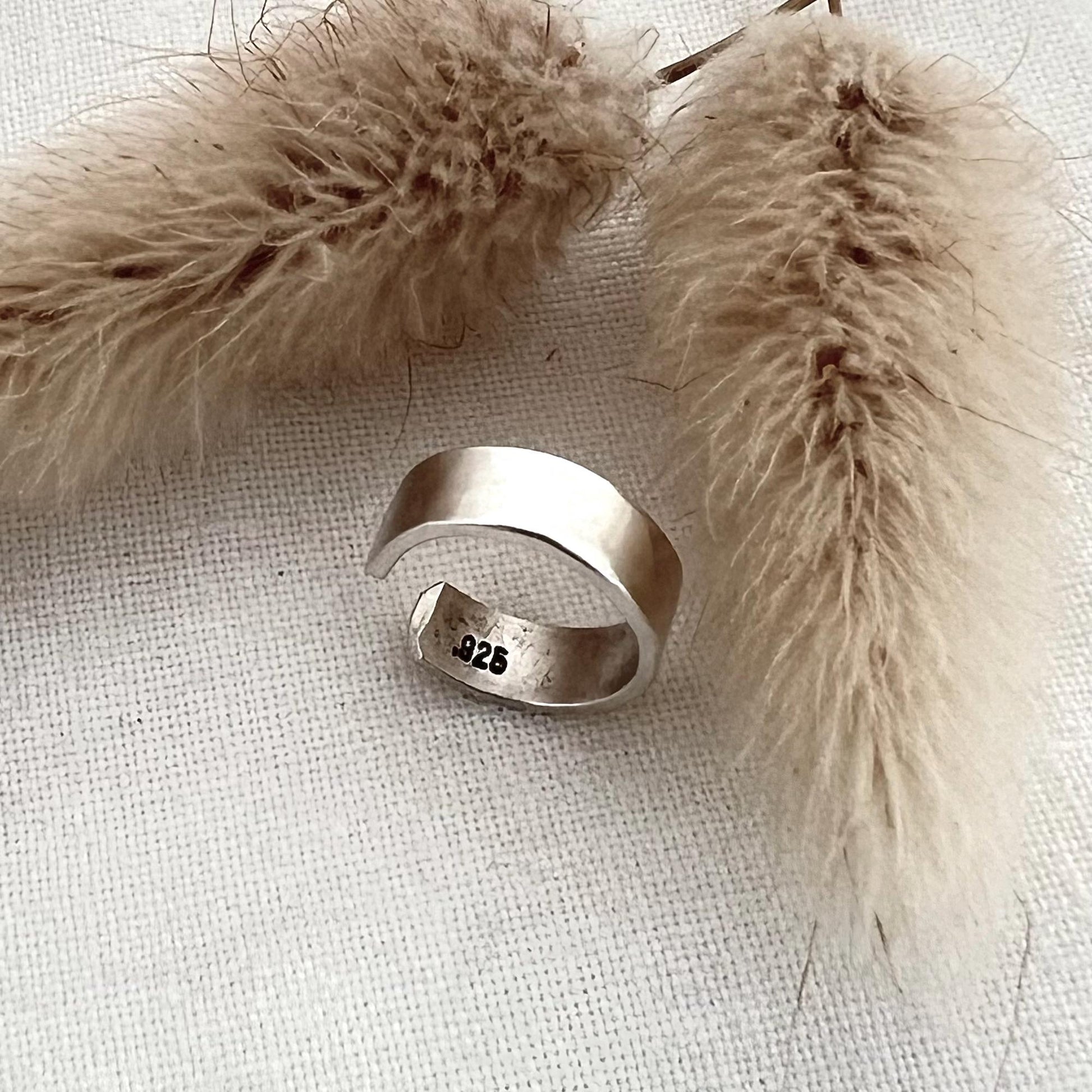 Sterling Silver ear cuff hand textured with a hammered finish 4mm wide.