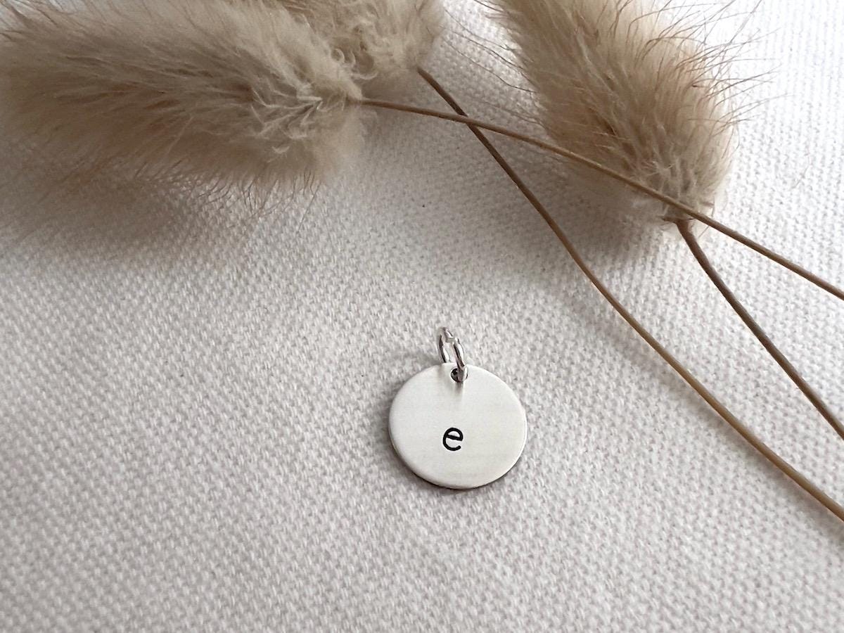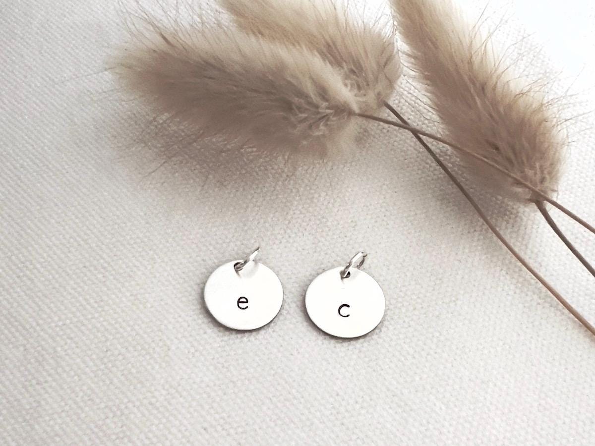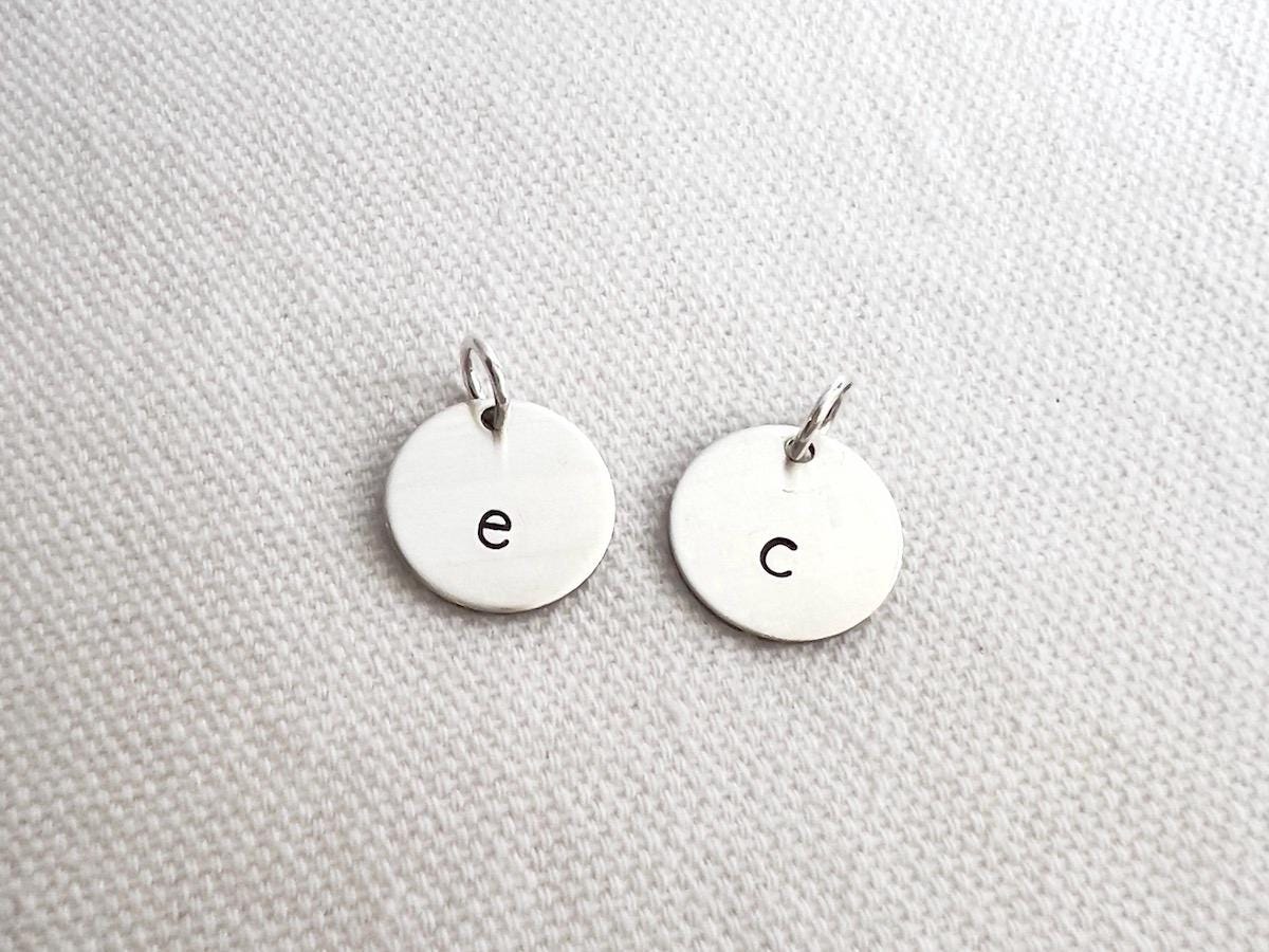 This sterling silver disc charm comes hand stamped with an initial of your choice. Can be left smooth or given a hammered texture. Choose from the drop down menu texture options and font choice.