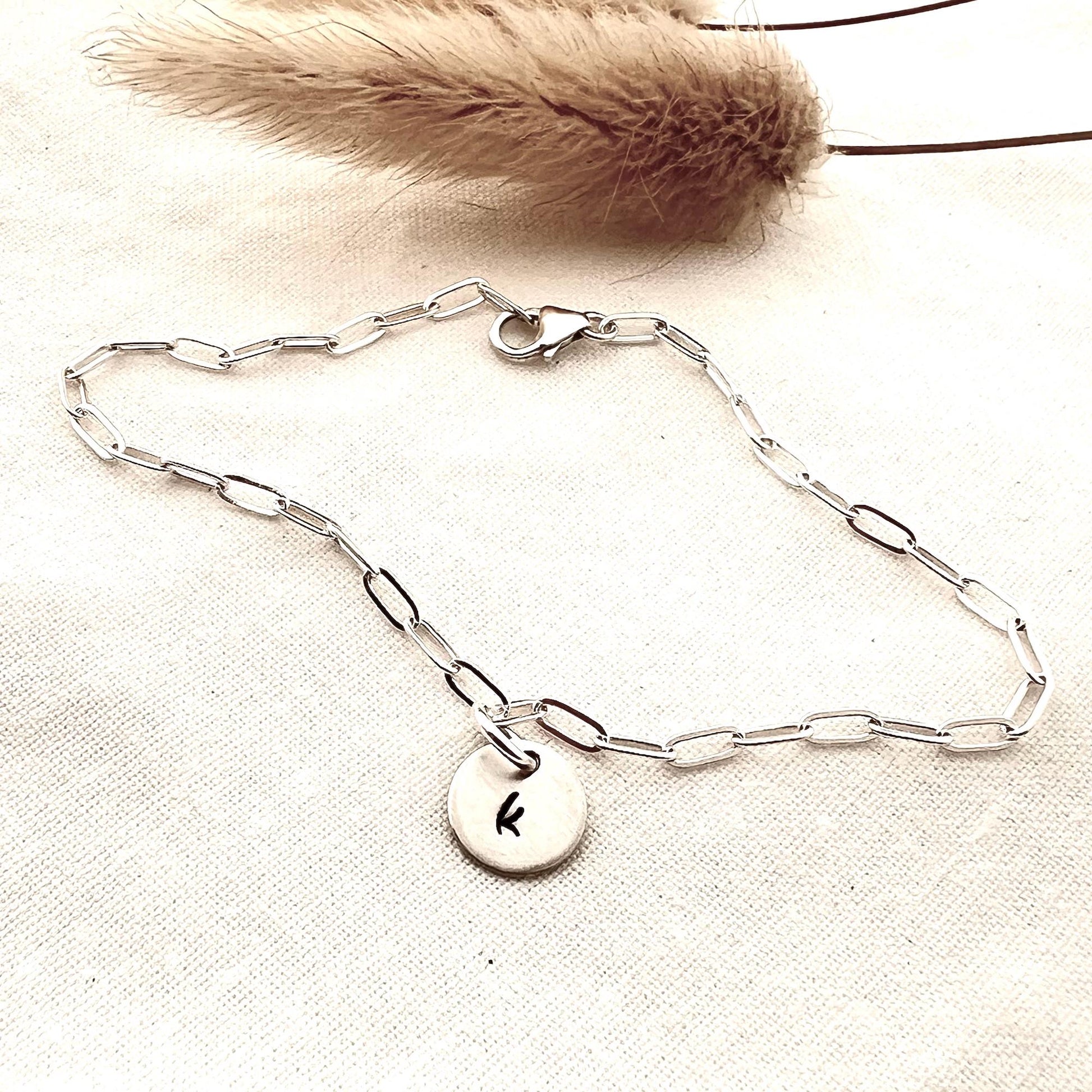 Add a personal touch to your jewelry collection with this elegant sterling silver anklet, featuring a custom initial disc charm. Handcrafted with high-quality 925 sterling silver, this minimalist ankle bracelet is a timeless accessory that effortlessly blends personalization with everyday style.