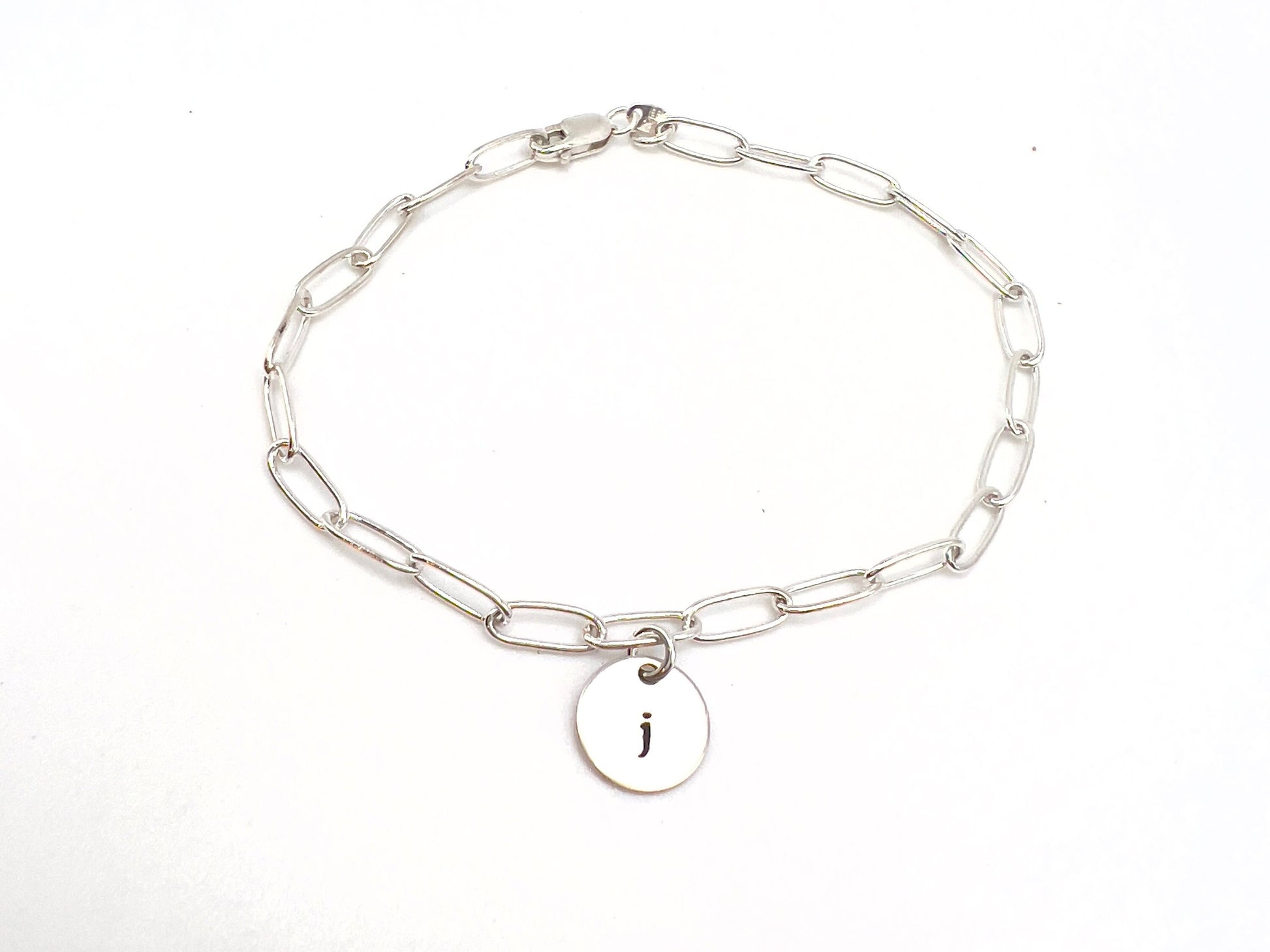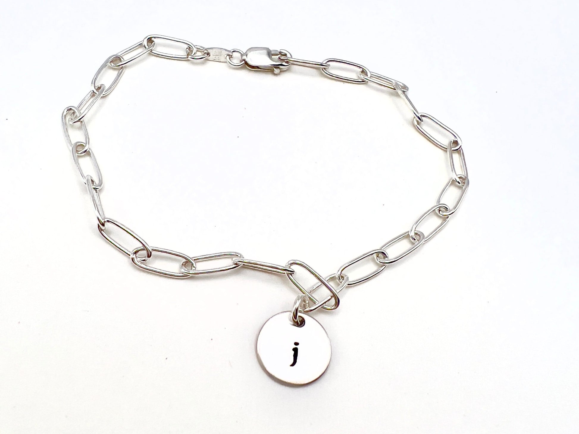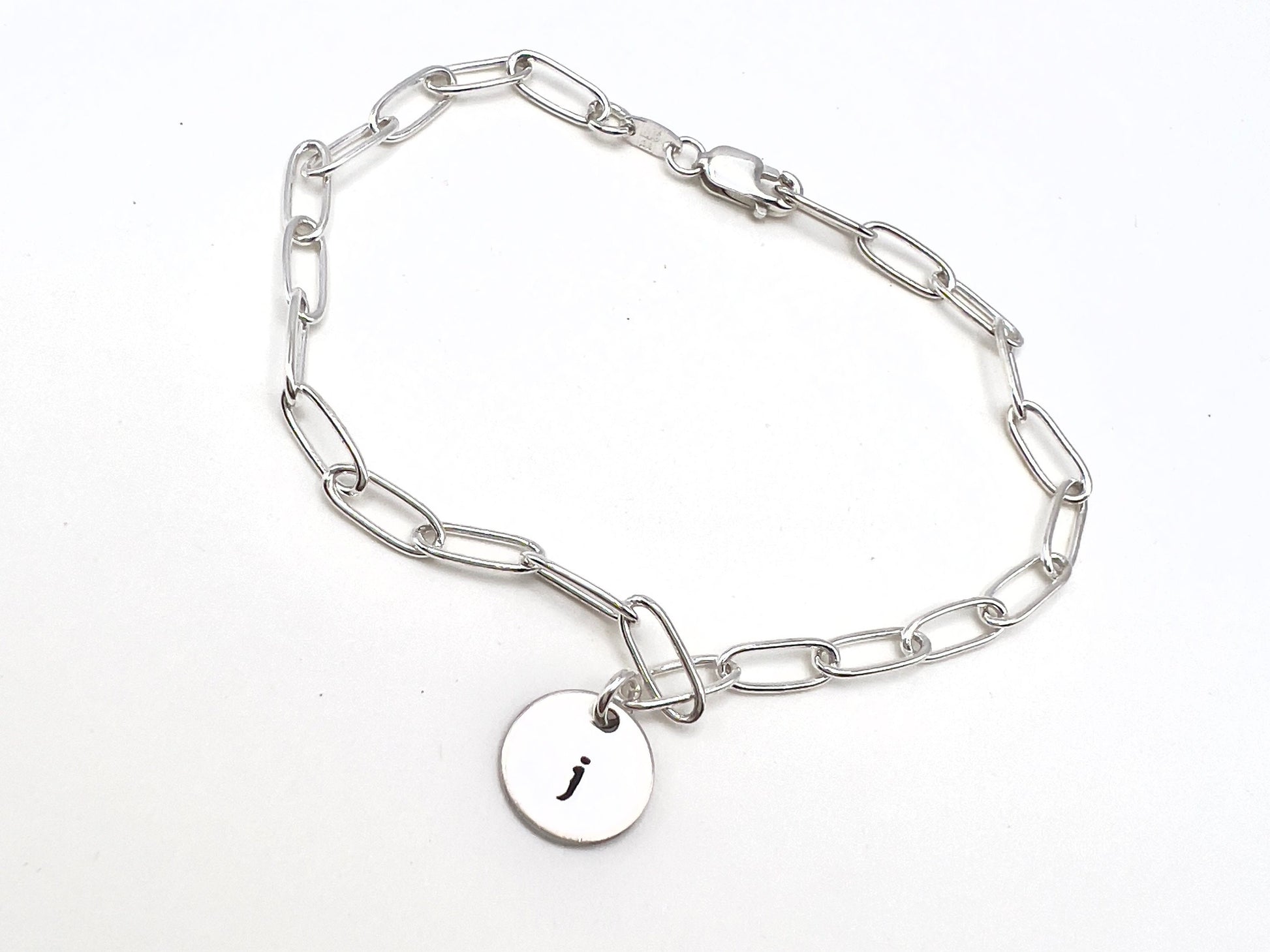 This solid .925 sterling silver paperclip bracelet can be worn alone or add a dainty initial charm hand stamped with your initial.