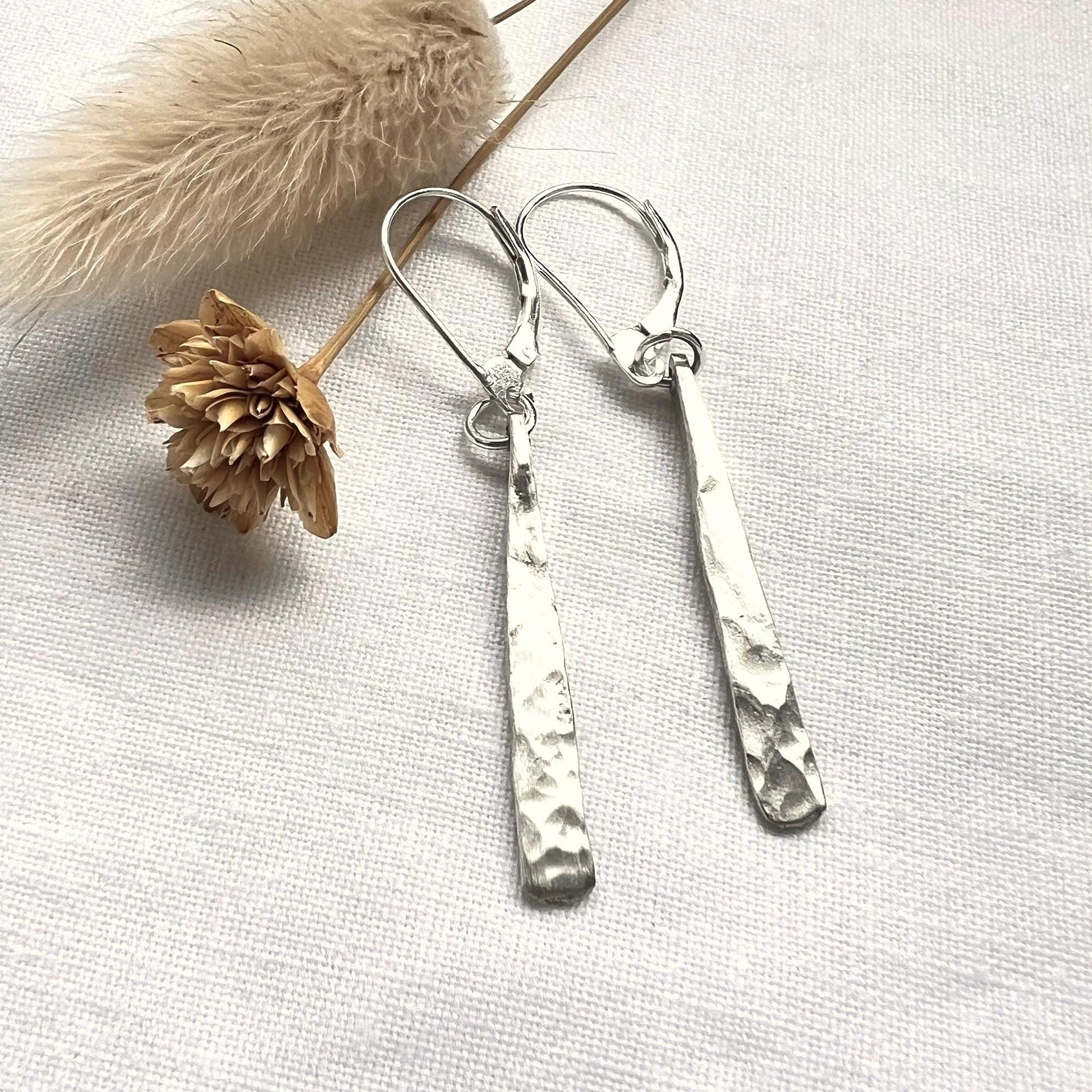 Sterling Silver Dangle Earrings | Hammered Bar Earrings | Everyday Jewelry