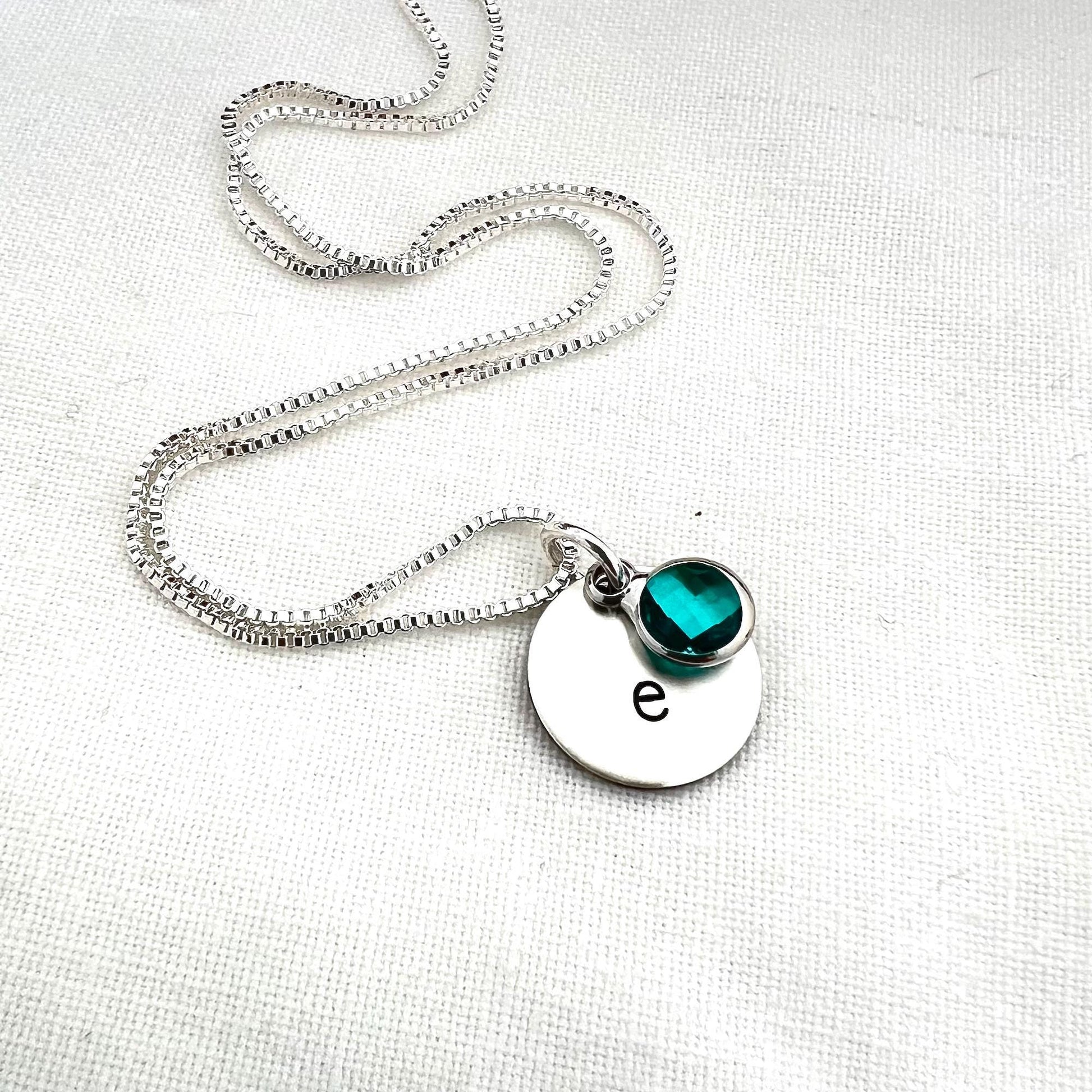 Sterling Silver Initial Necklace | Personalized Birthstone Pendant