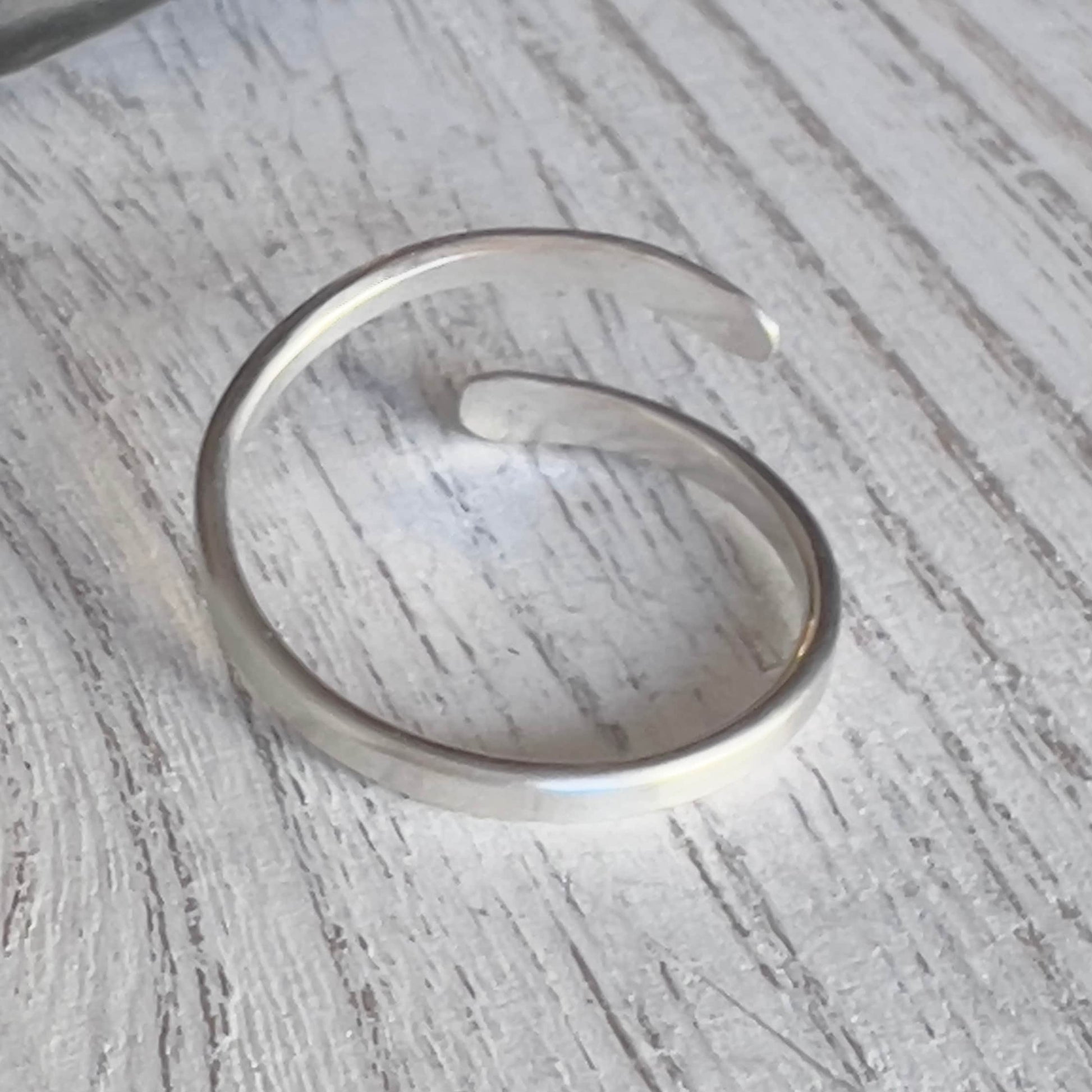 This sterling silver wrap ring is made of sterling silver that is hand forged and can be hand stamped with initials or hearts. This ring is a great go to everyday wear ring. Choose the size from the drop down menu. Available in sizes 4-12.