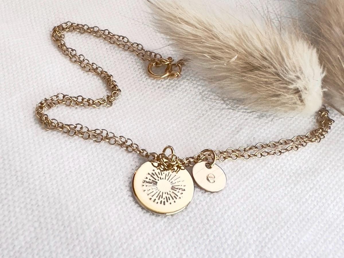 Sunshine Initial Bracelet | Personalized Initial Disc | Dainty Gold Bracelet | Hand Stamped | Gift For Her